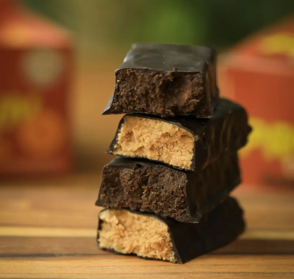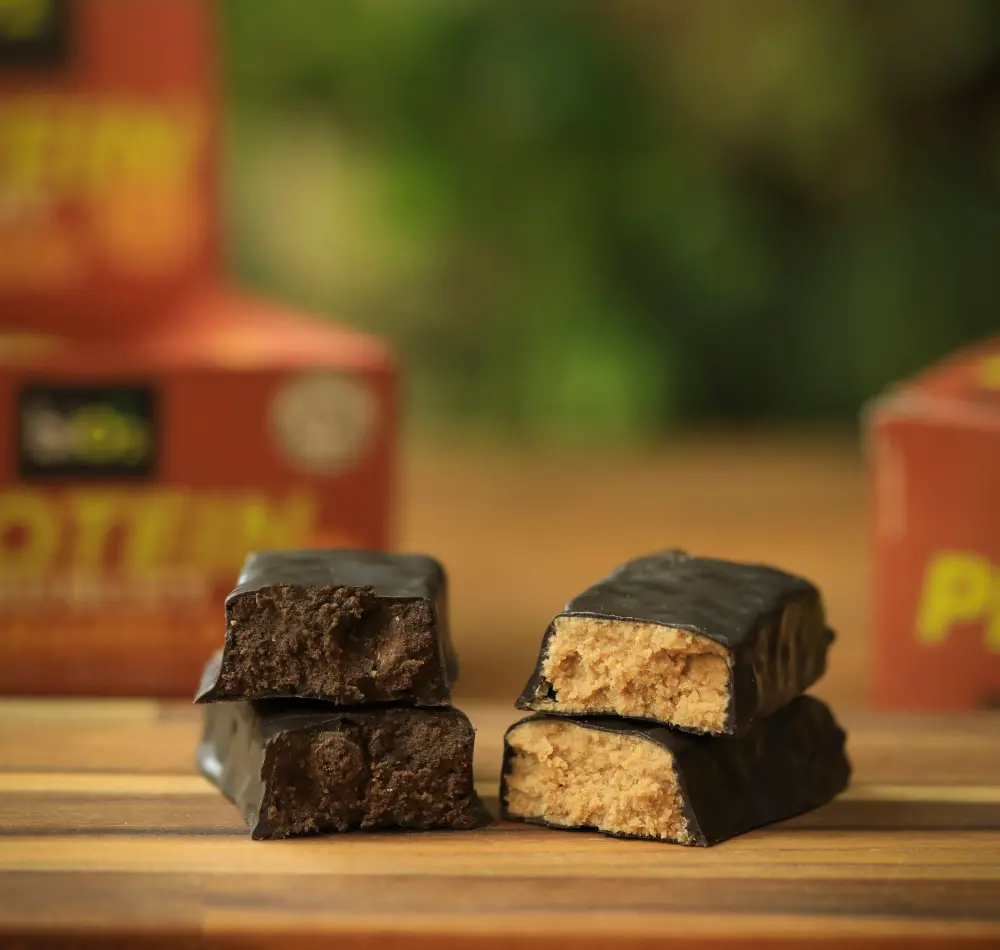 Barra de proteína vegana, sem glúten e fonte de fibras. Em 5 sabores incríveis, recheados com flocos de cereais orgânicos e cobertos por chocolate.