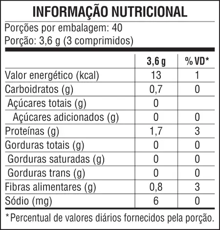 Um poderoso nutriente, considerado pela OMS com o alimento do milênio. Com alto teor de proteínas, aminoácidos essenciais, vitaminas (vitamina B 12 , B 6 , B 2 , A e E), minerais (Fe, Ca, P, Mg, Zn, Cu , Cr, Mn, Na, K e Se), enzimas, ácidos graxos essenciais e outros nutrientes.