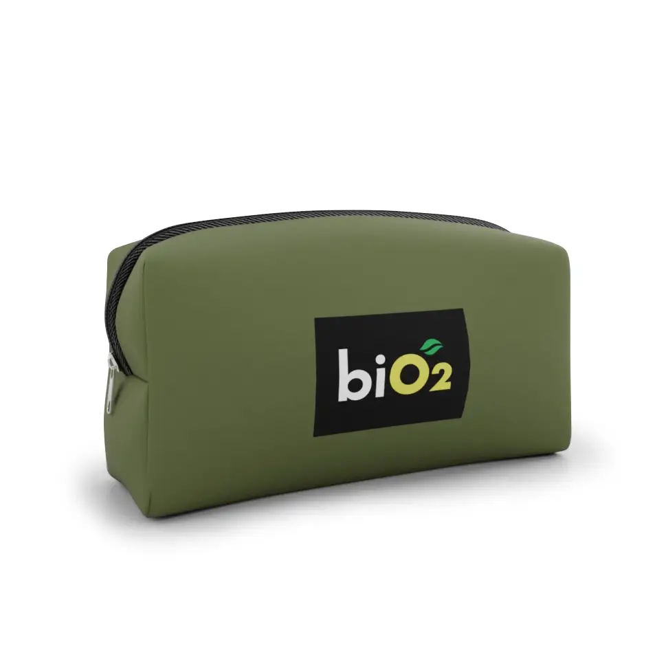 Nécessaire em neoprene bem espaçosa e maleável no formato box, que combina estilo e praticidade! Cabem cerca de 15 barrinhas biO2 variadas para você levar com você para onde for.