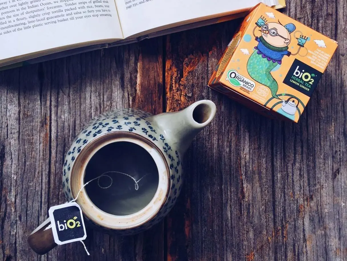 Chá orgânico de infusão de chá verde e limão rico em nutrientes que proporcionam bem-estar