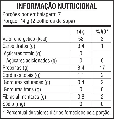 Um poderoso nutriente, considerado pela OMS com o alimento do milênio. Com alto teor de proteínas, aminoácidos essenciais, vitaminas (vitamina B 12 , B 6 , B 2 , A e E), minerais (Fe, Ca, P, Mg, Zn, Cu , Cr, Mn, Na, K e Se), enzimas, ácidos graxos essenciais e outros nutrientes.
