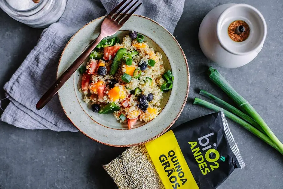 Leve, colorida e saborosa: Receita de salada tropical de quinoa.