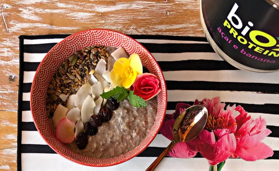 Receita de mingau de aveia proteico com banana e leite vegetal.