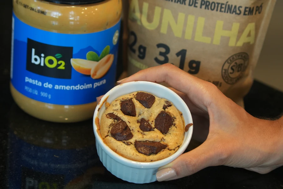Receita de cookie de colher proteico, com poucos ingredientes, sem ovo, sem leite e sem banana! Crocante por fora e molinho por dentro, perfeito pra comer quando bate aquela vontade de um docinho!